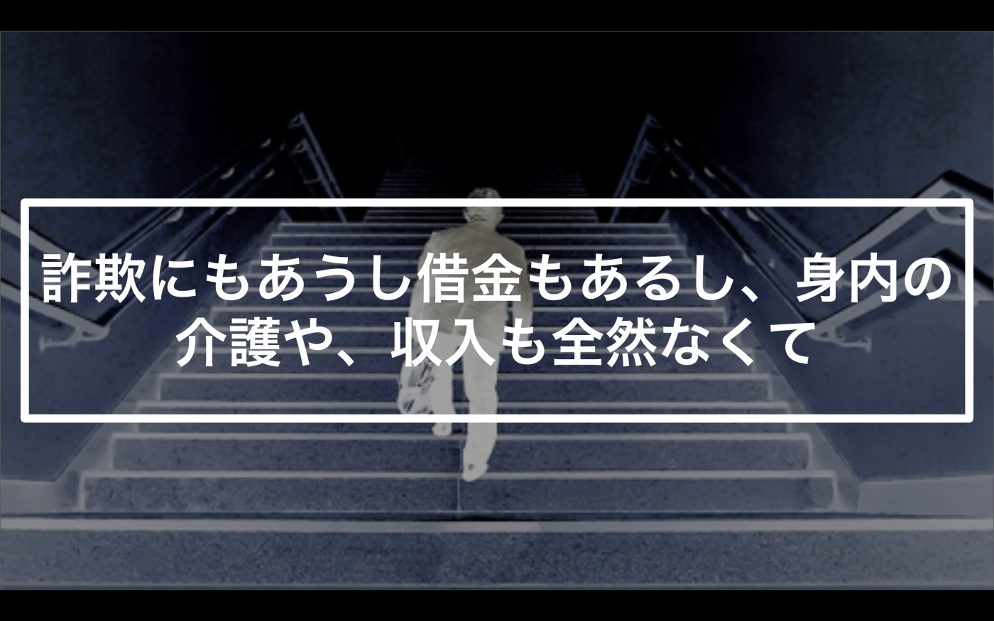 詐欺にもあうし、借金もあるし、身内の介護や、収入も全然なくて